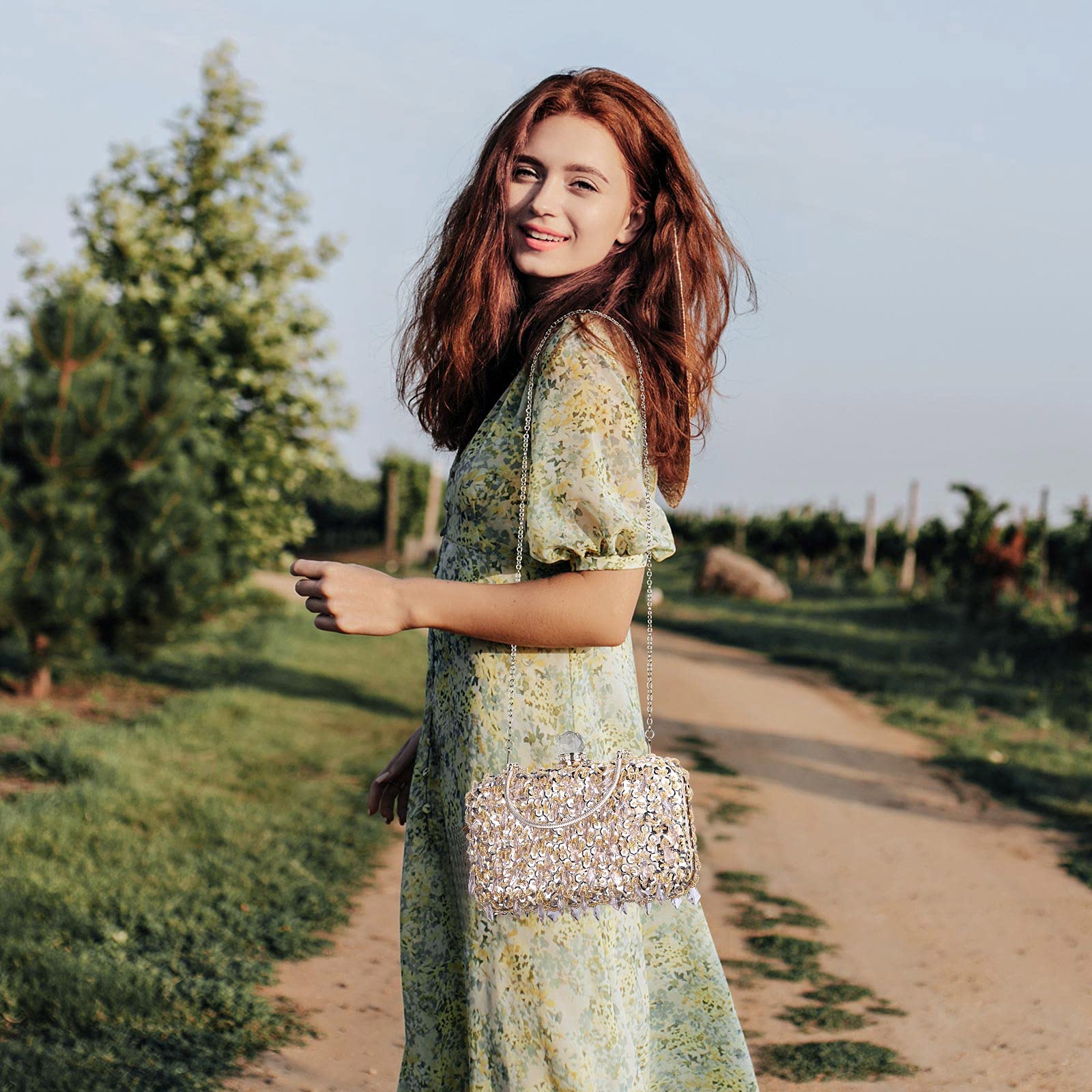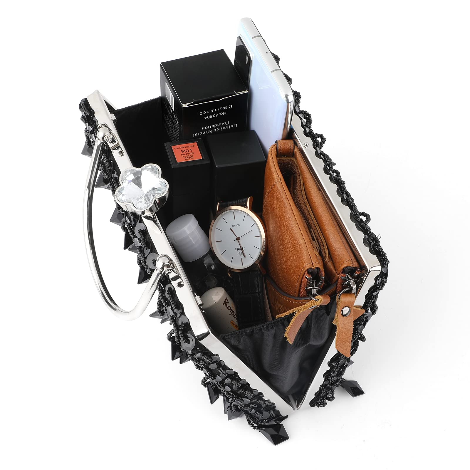 • UBORSE Women Wedding Clutch Rhinestone Bling Sequin Evening Bags Vintage Crystal Beaded Cocktail Party Party Purse
