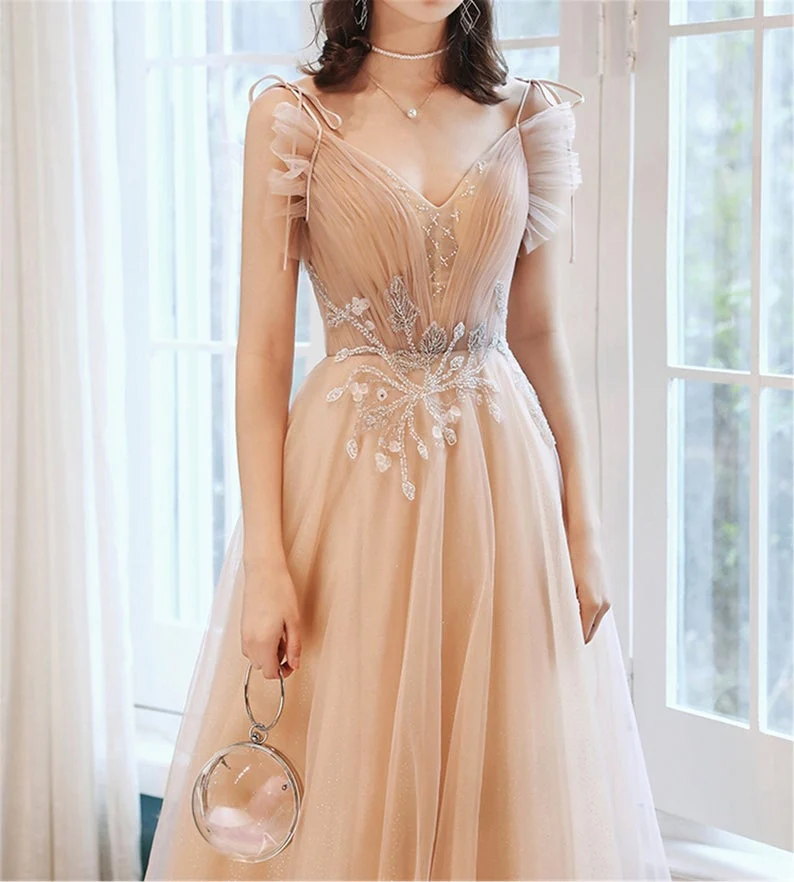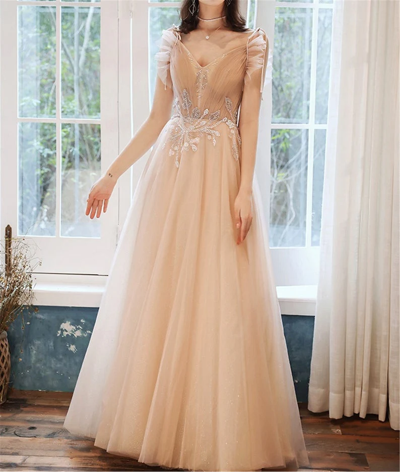 • A-line Long Tulle Evening Party Dress Fairy Princess Prom Dress Women Custom Dress OKV83