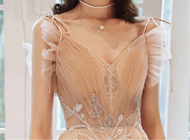 4.Embellishment: beading, embroidery, appliques, handmade flowers, handmade ruffles are available.