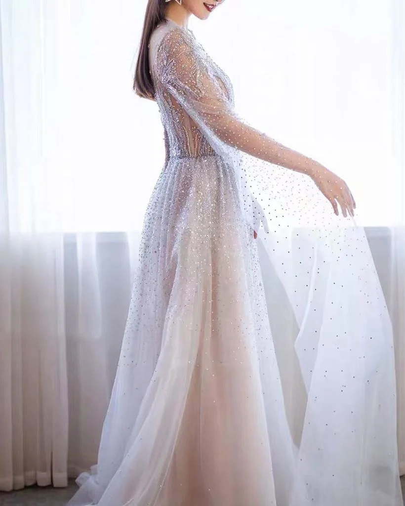 A-line Round Beaded Long Prom Dress Charming Formal Gown OKS70