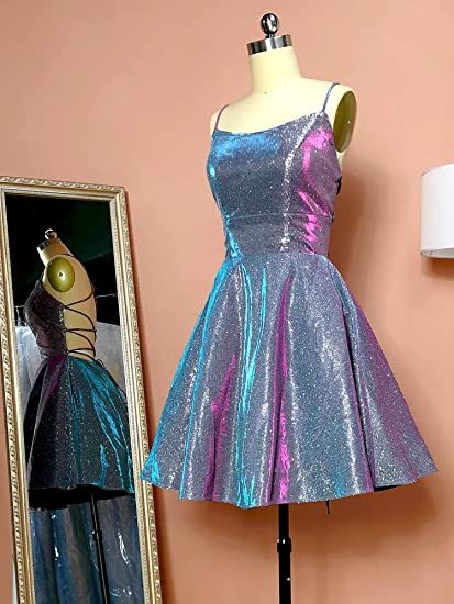 • A-line Spaghetti Straps Homecoming Dress with Pockets Short Prom Dress for Juniors OKY46