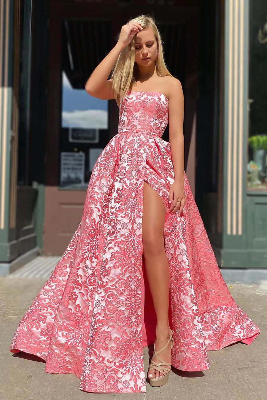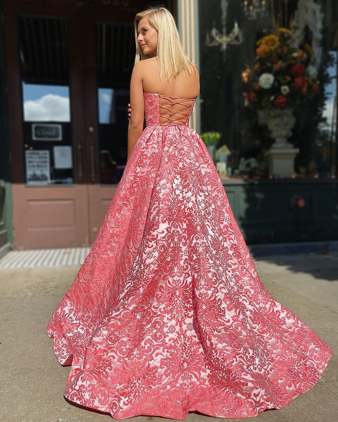 • A-line Strapless Modest Cheap Long Prom Dress With Pockets Unique Evening Dress OKX33