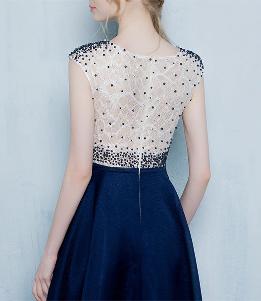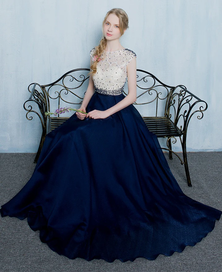 Beautiful Dark Blue Long Beading Zipper Back Prom Dress K724