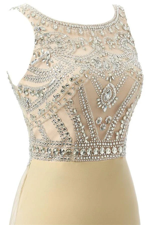 Beauty Mermaid Champagne Long Beaded Prom Party Dress OK4