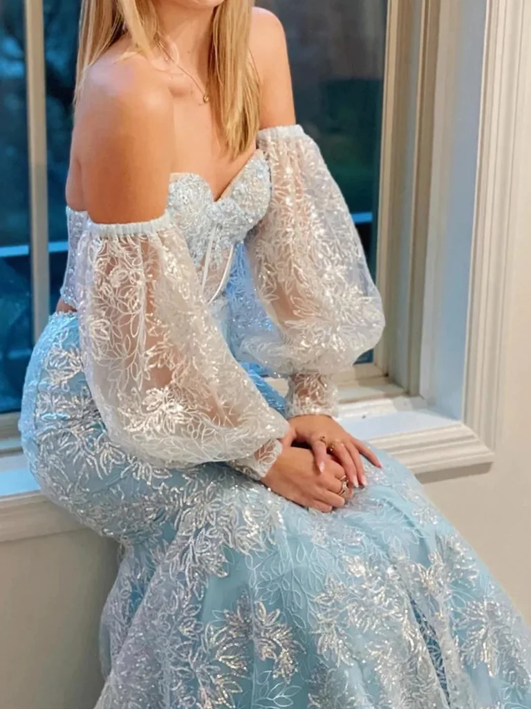 Black Lace Mermaid Long Prom Dresses, Formal Evening Dresses OK2002