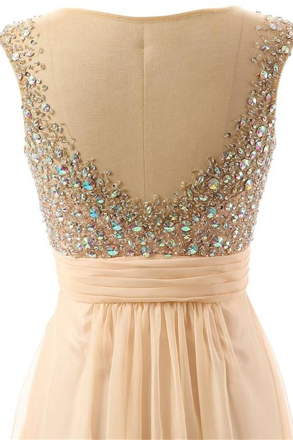 Long Beaded A-line Open Back Elegant Prom Dress OK5