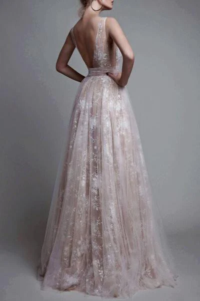 A Line Prom Dresses,V-neck Sexy Evening Party Dress, Long Formal Dress OK186