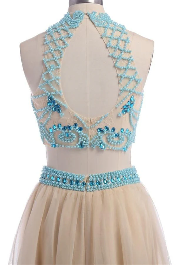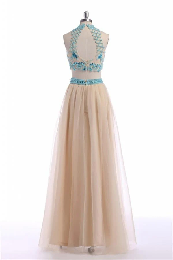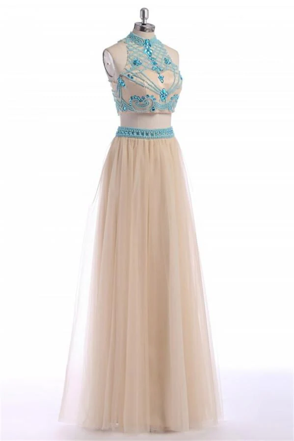 Two Pieces Halter Backless Beautiful Long Prom Dress K40