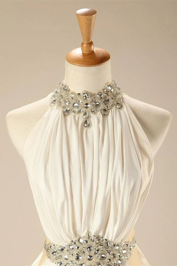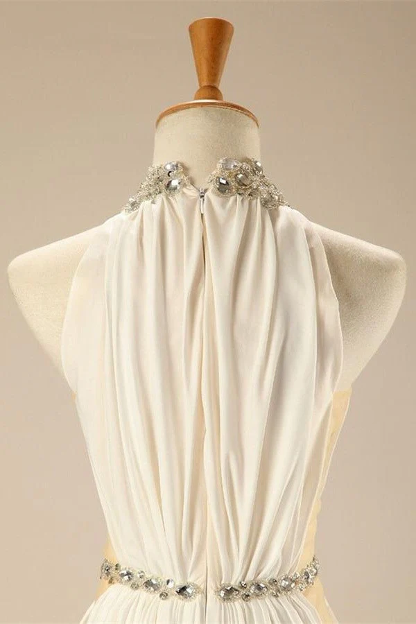 Charming Elegant White Halter Beaded Chiffon Long Prom Dress OK26