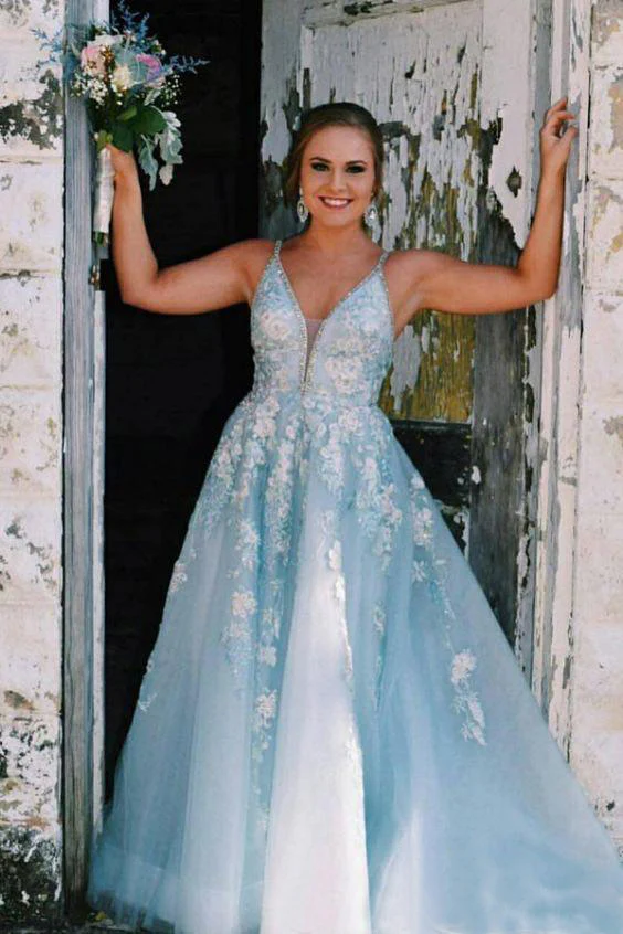 Charming Spaghetti Straps V Neck Sleeveless Tulle Mint Prom Dress with Beading OKY78