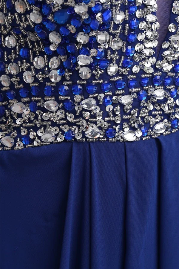 Chiffon Beading Royal Blue V-neck Long Elegant Prom Dress K619