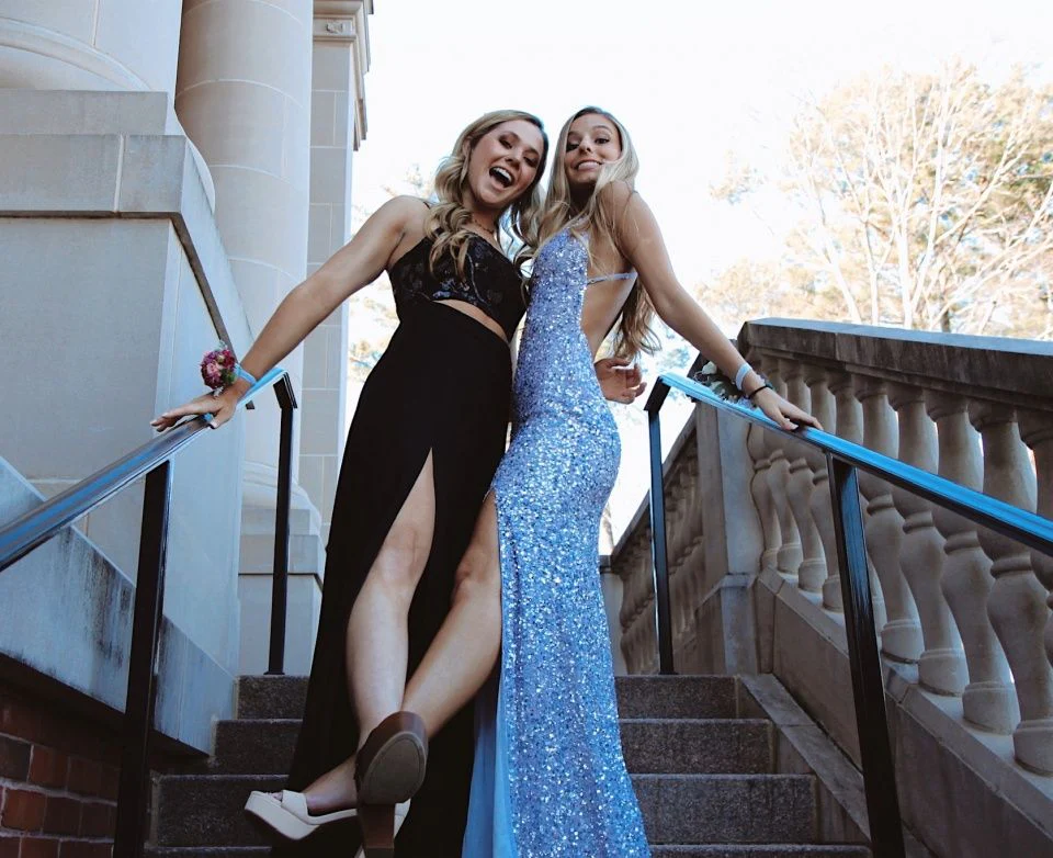 • Glitter Mermaid V Neck Cross Back Blue Sequin Prom Dress with Slit OK1036