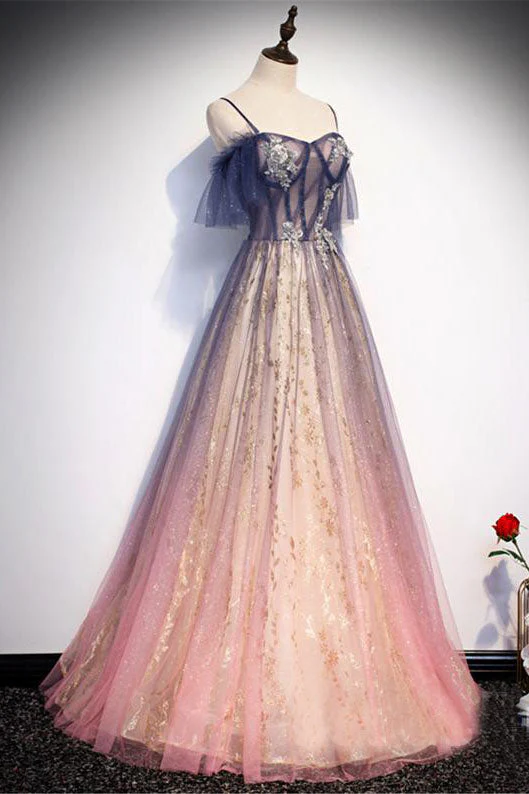 Ombre Purple Pink Prom Dresses Lace Up Evening Dresses A-line Girls Prom Dresses OKW1