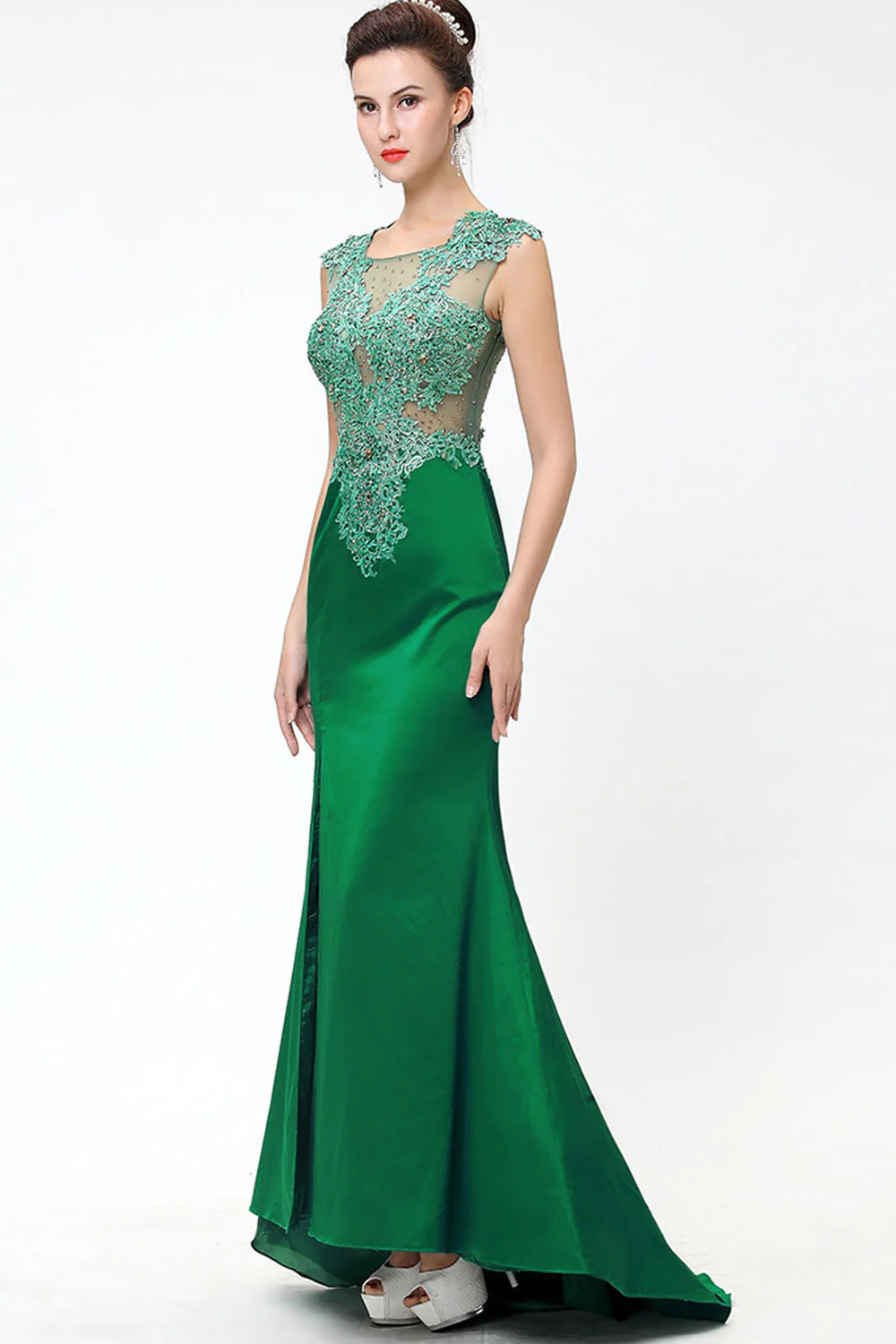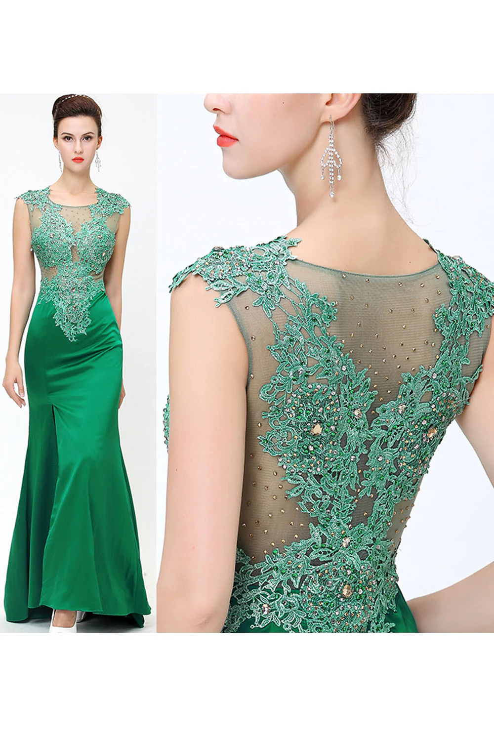 Green Lace Beaded See Through Mermaid Sexy Prom Dress ED0850