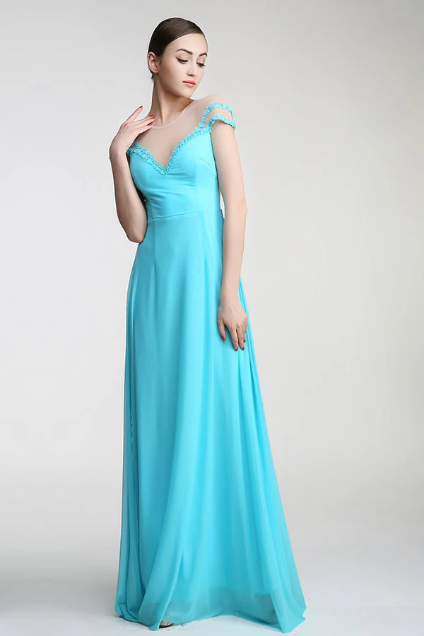 Light Sky Blue Deep V-neck Long Prom Dress ED0838