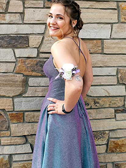 • Long A-line Prom Dress with Pockets Formal Evening Ball Gowns Side Slit Glitter Party Dress OKY42