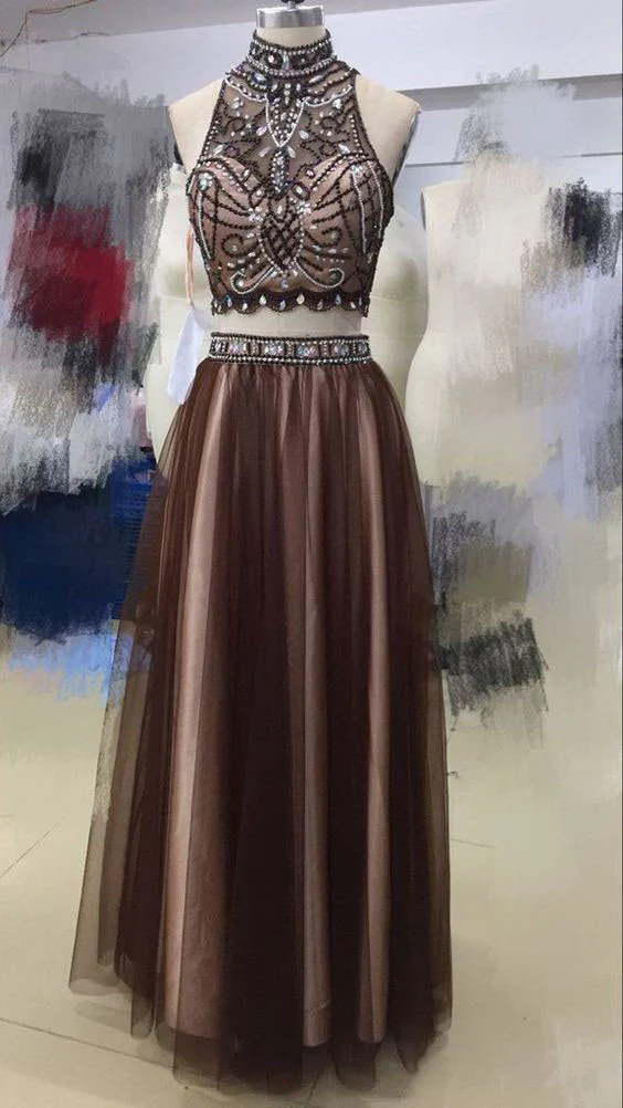 • Lovely Two Pieces Colorful Beading A-line Long Handmade Prom Dress K702