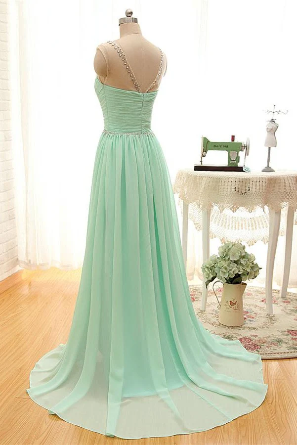 Mint Beaded Charming Backless Cheap Long Chiffon Prom Dress OK24