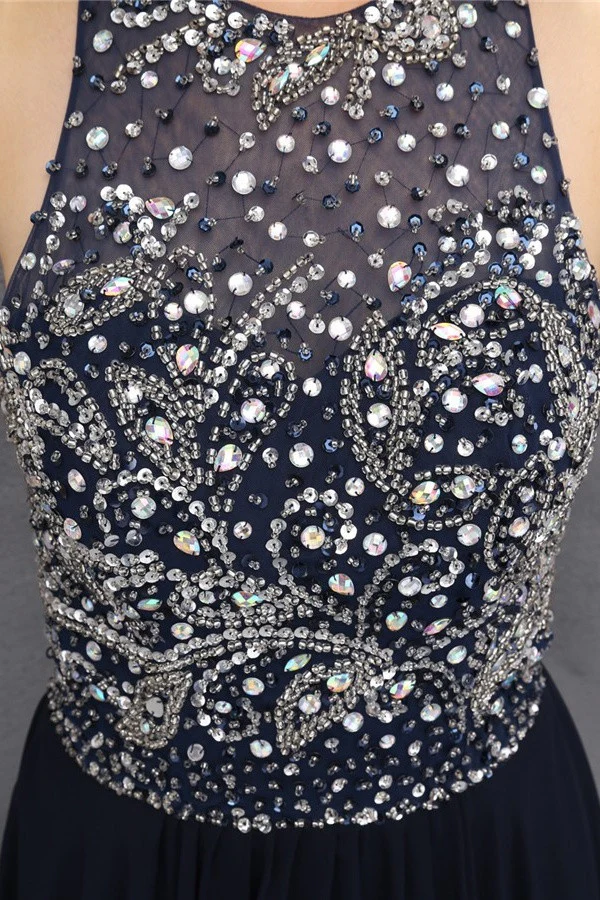 Modest Black Chiffon Beading Charming Long Prom Dress K620