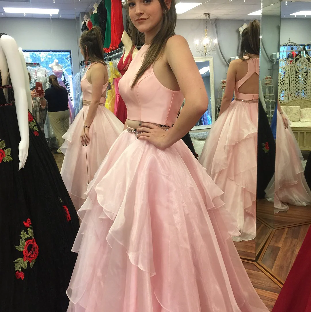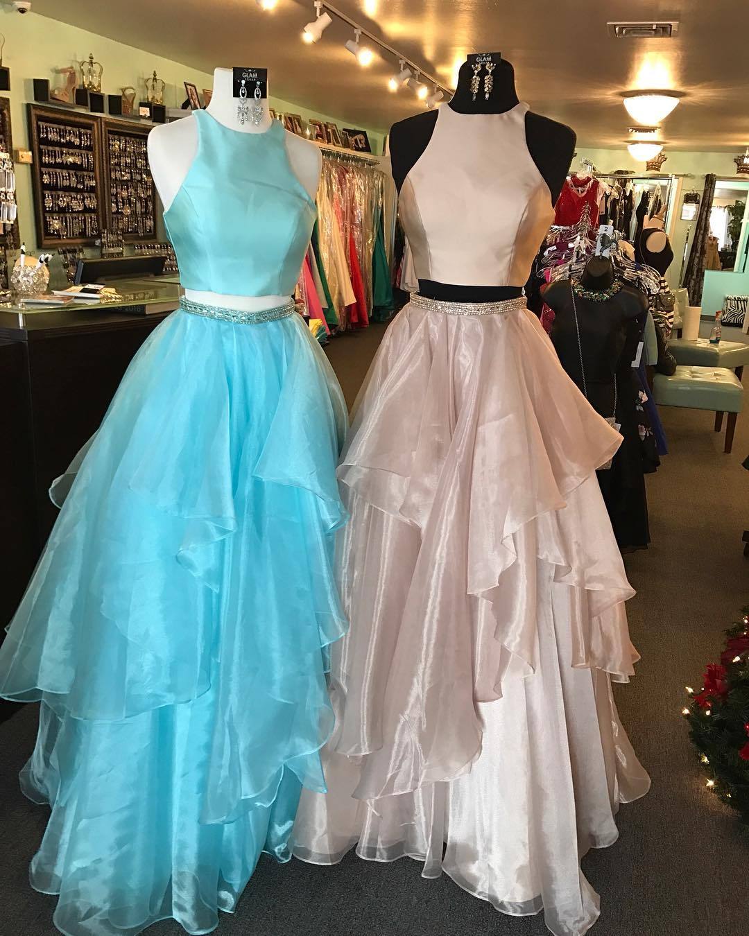 New Two Piece A-line Floor-length Long Puffy Prom Dresses With Ruffles OK881