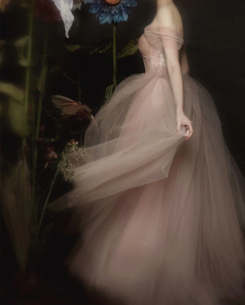 • Off Shoulder Long Evening Dress A-line Tulle Prom Gown Custom Graduation Gown OKV87