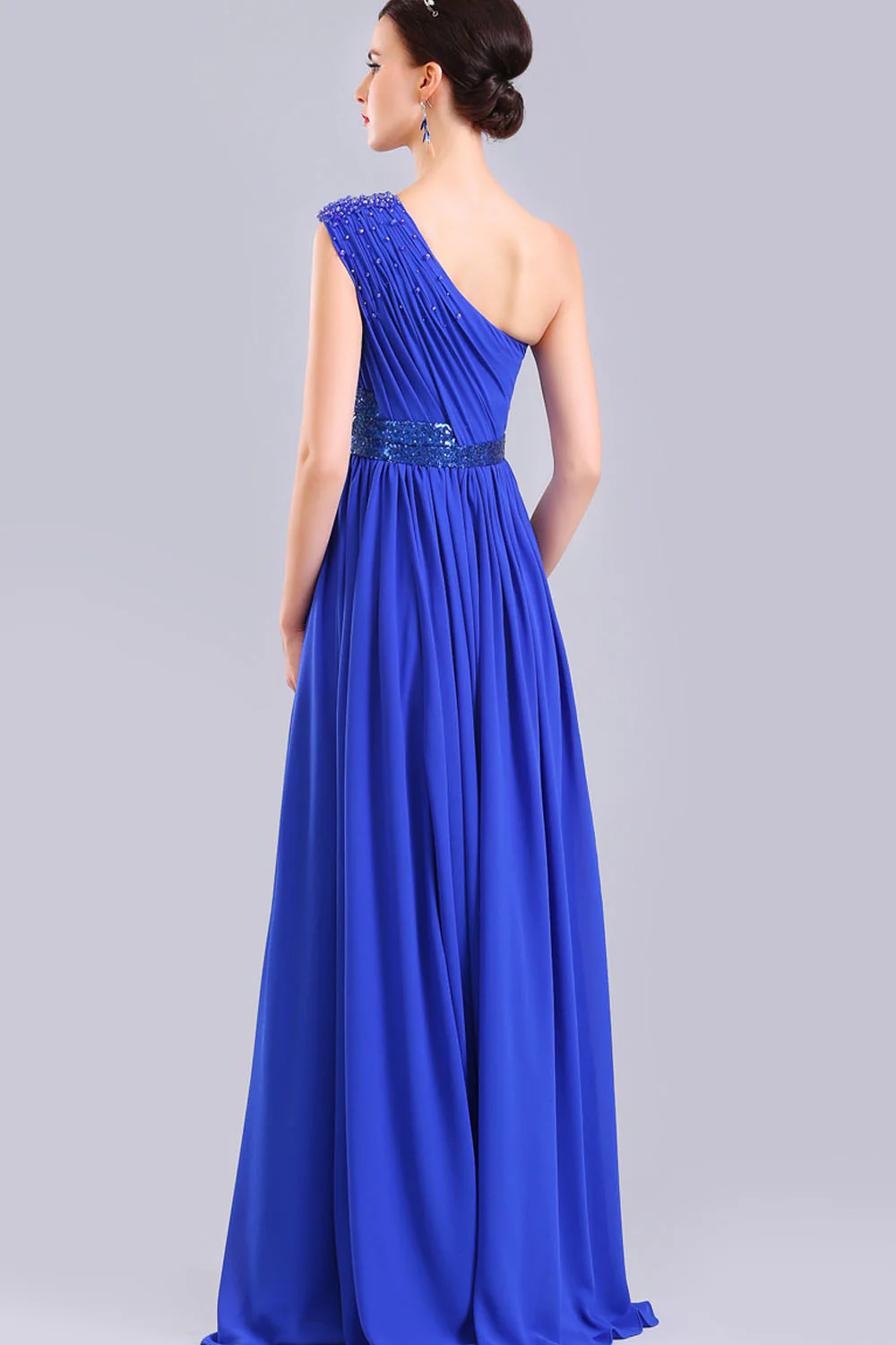One Shoulder Chiffon Long Royal Blue Simple Prom Dress ED0852