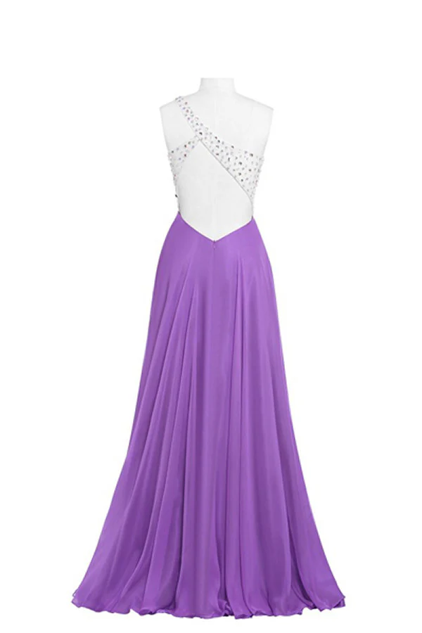 Purple One Shoulder Beaded Long Prom Dress ED0964