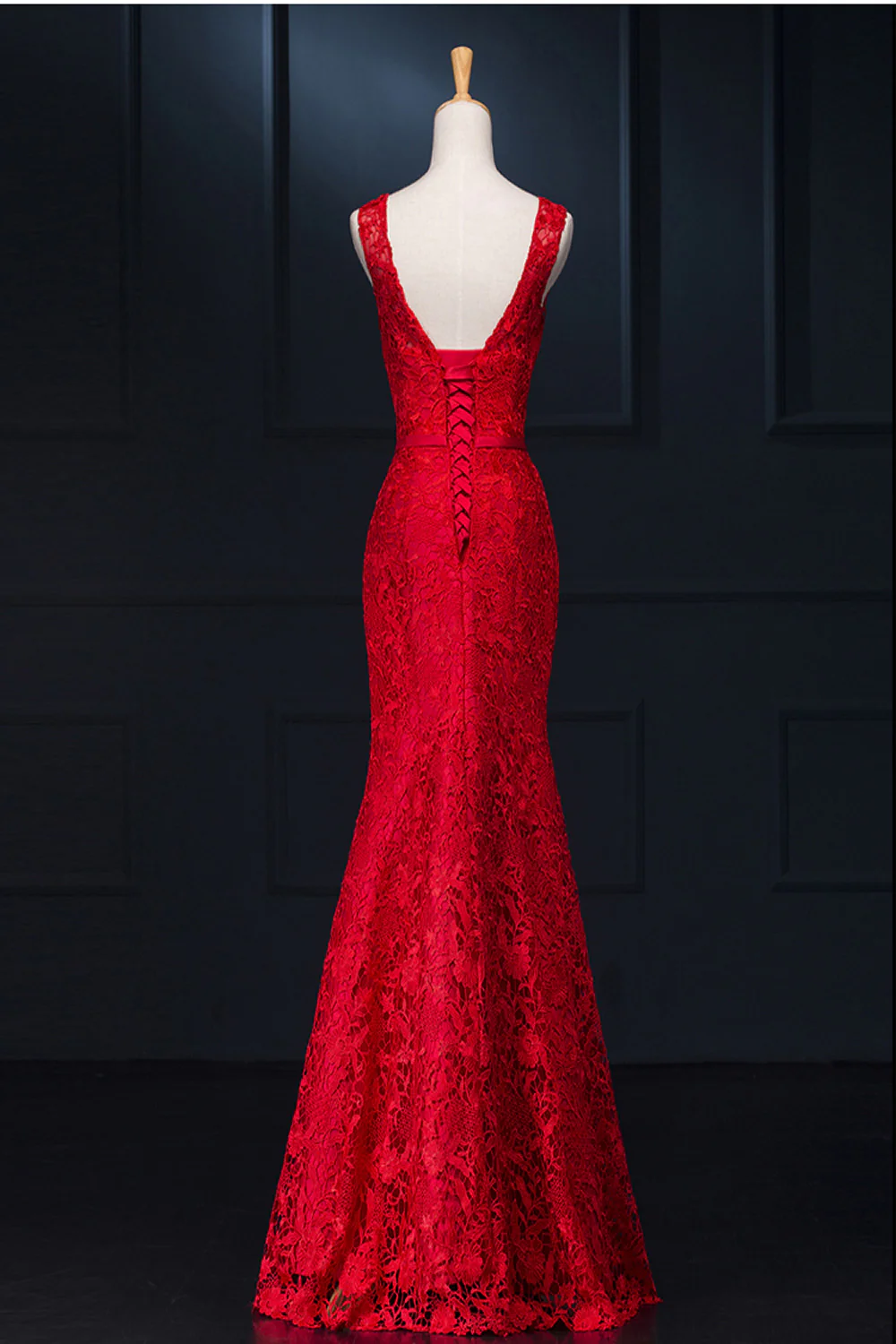 • Sheath Real Sexy Red Lace Long Mermaid Backless Prom Evening Dresses ED0713