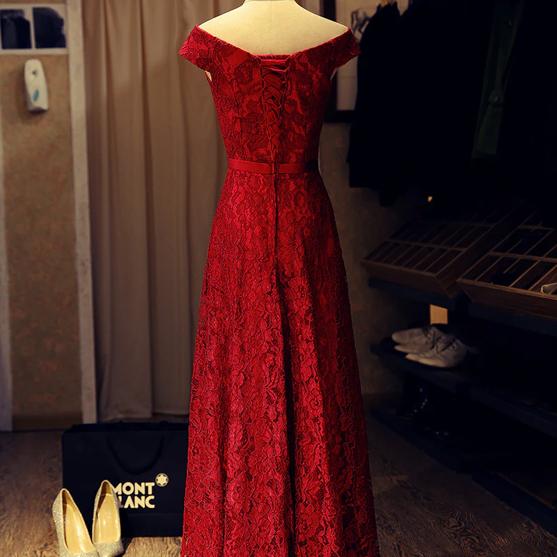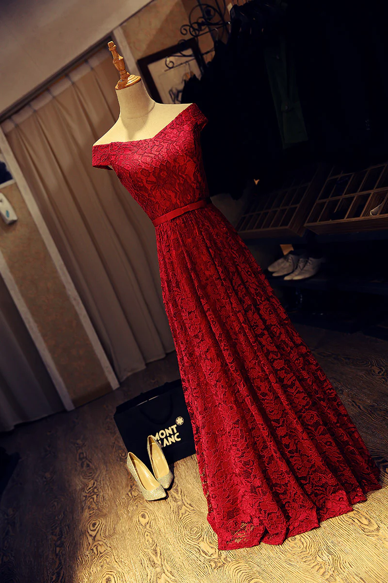 Royal Blue A Line Off Shoulder Lace Long Prom Dress Evening Dresses OK741