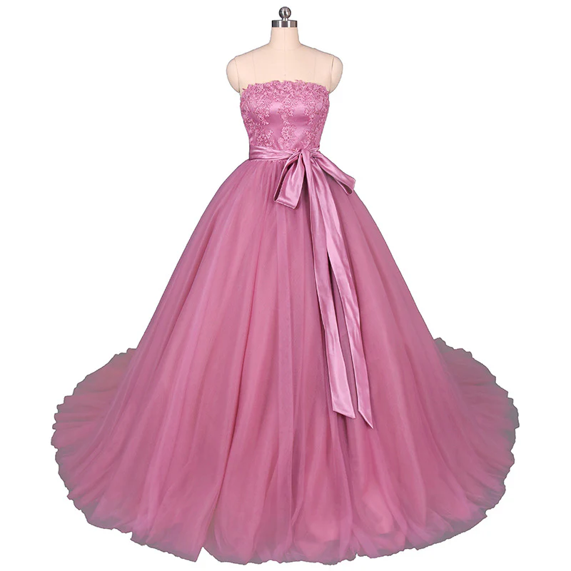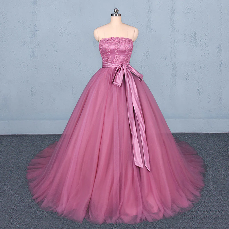 • Strapless A Line Tulle Lace Appliques Prom Dress, Long Formal Dress OKQ22