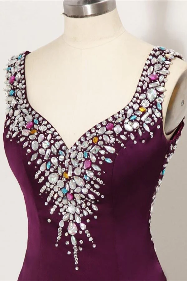 • Sweep Train Plum Beaded Long Front Split Mermaid Prom Dress For Teens K740