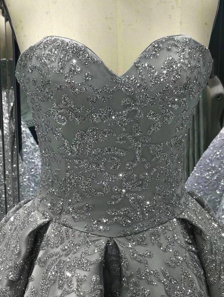 • Sweetheart Gray Sleeveless Long Ball Gowns Shiny Sequin Prom Dresses OK841