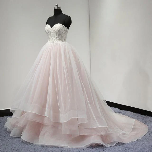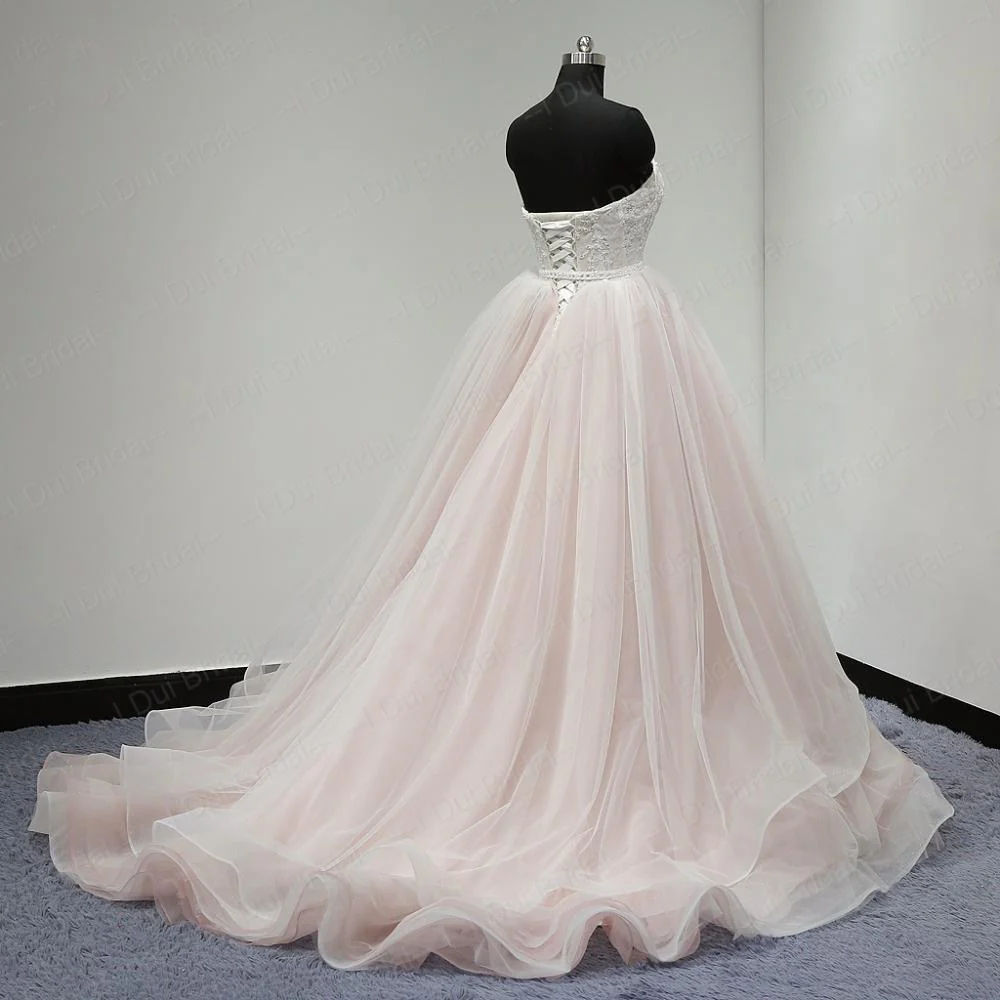 Sweetheart Lace Up Back Charming Affordable Long Pearl Pink Prom Dress Ball Gown OK624