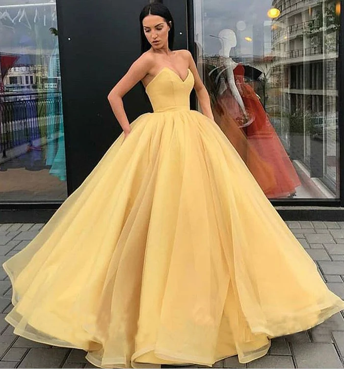 • Sweetheart Yellow Long Modest Prom Gowns, Long A-line Fashion Prom Dress OKP79