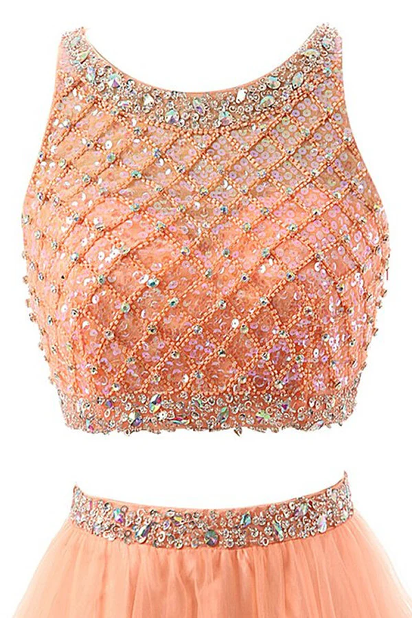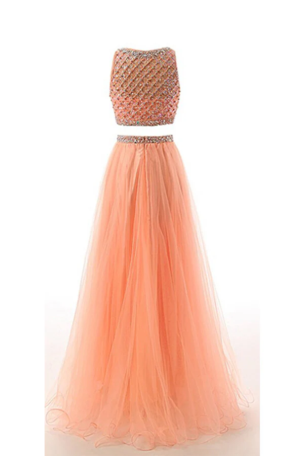 Two Pieces Orange Red Beaded Long Prom Graduation Dress ED0965