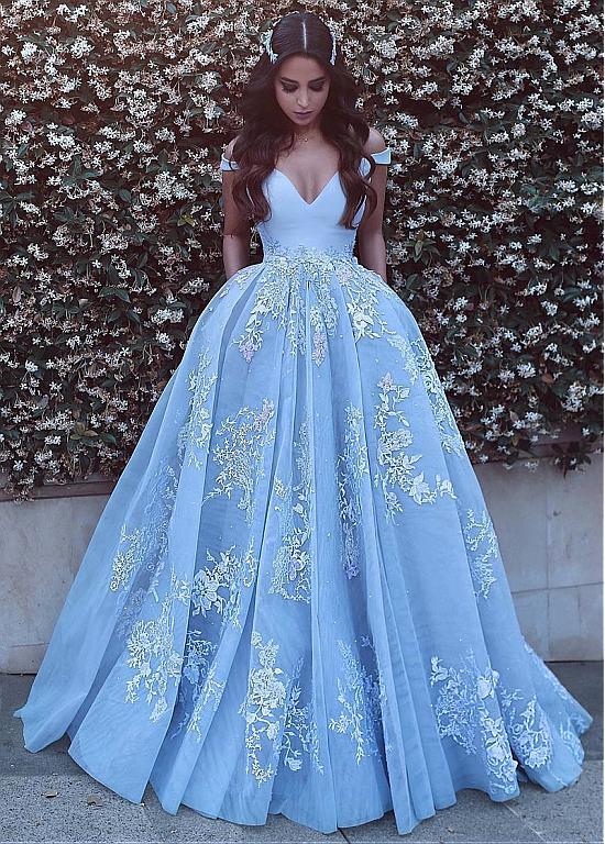 Wonderful Ball Gown Appliques Prom Dresses,Formal Blue Evening Dress,Quinceanera Dresses OK357