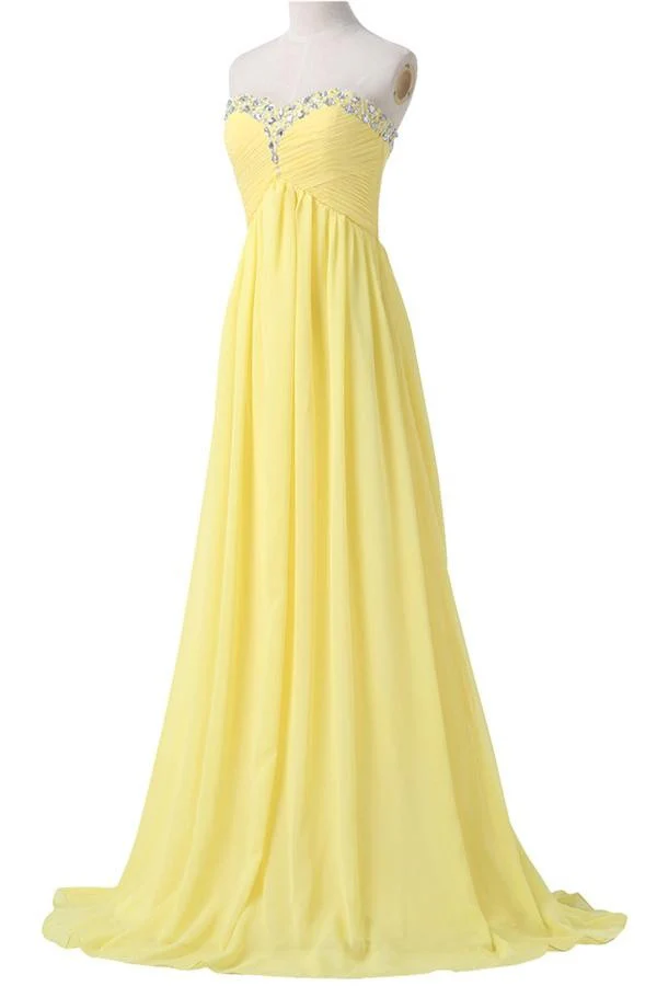 • Yellow Chiffon Beaded Strapless Lace Up High Low Pregnant Prom Dress K745