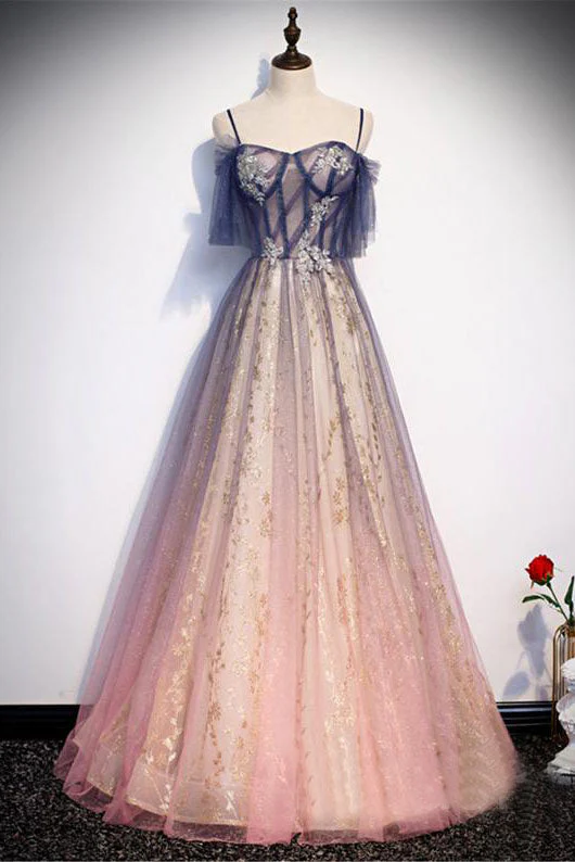 Sexy A Line Tulle Long Sweetheart Prom Dress, Charming Evening Party Dresses OK1665