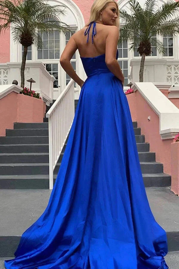Royal Blue Prom Dress New Arrival Long Side Split Dress Evening Wear OKW29