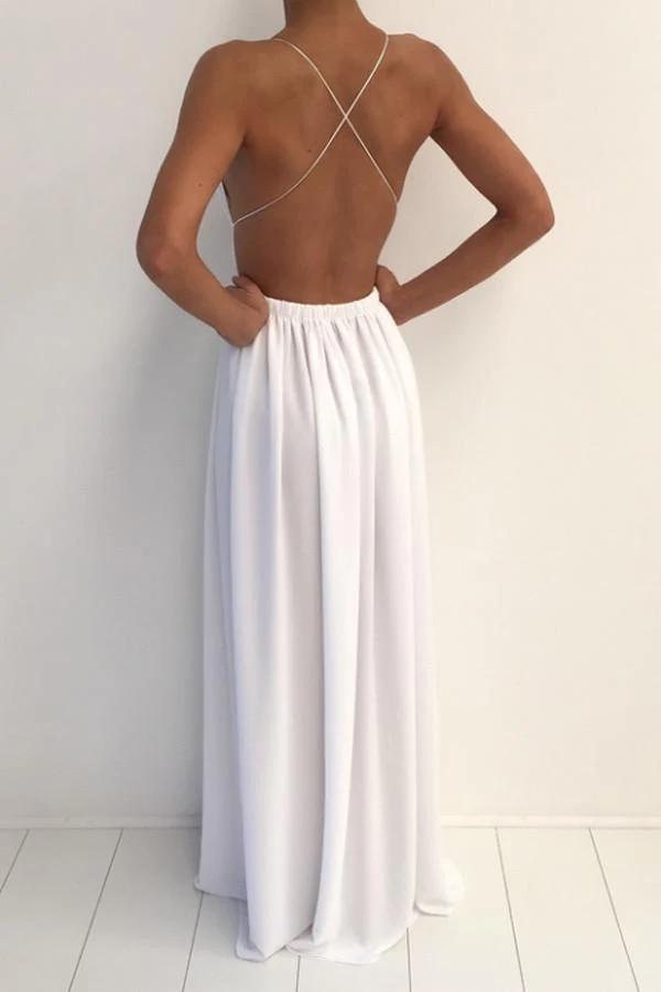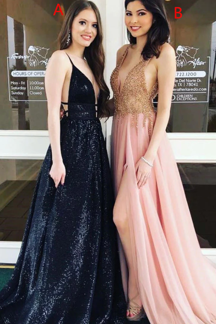 Unique Long Chiffon Sequin V-neck Backless Prom Dress OKA8