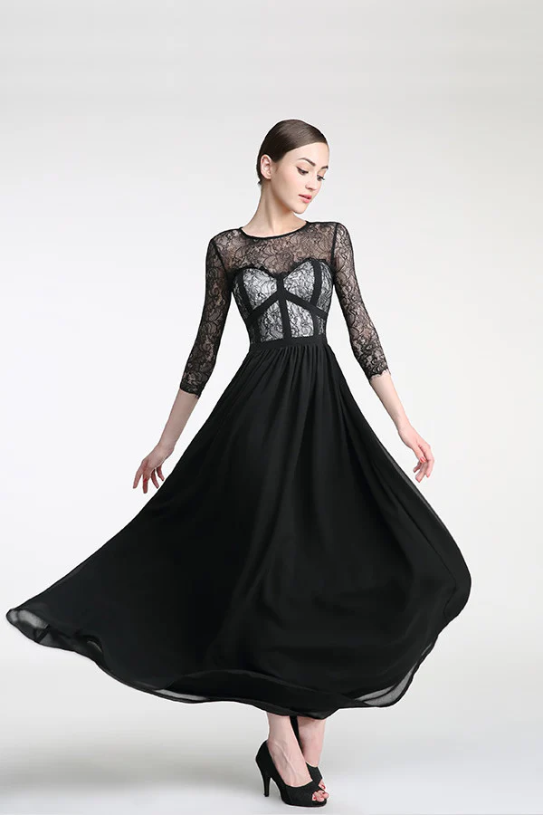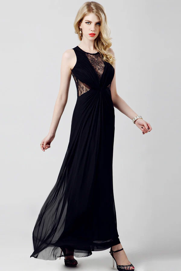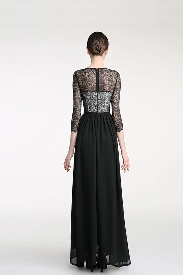 Elegant Chiffon Long Black Lace Simple Prom Dress ED0833