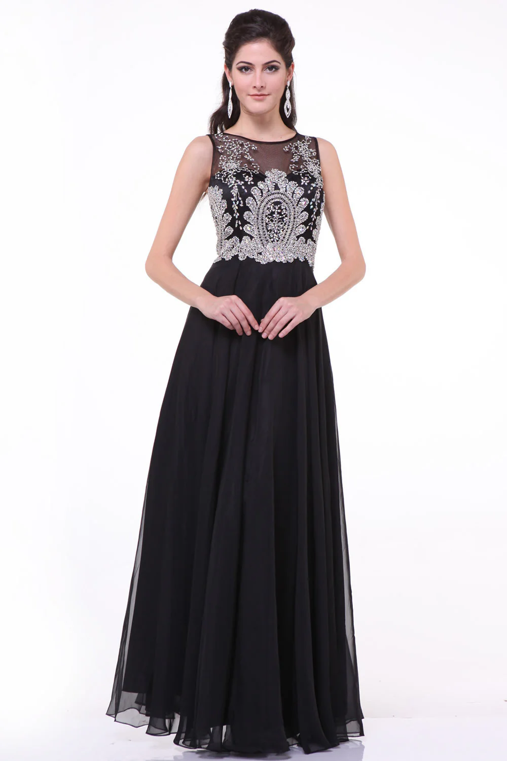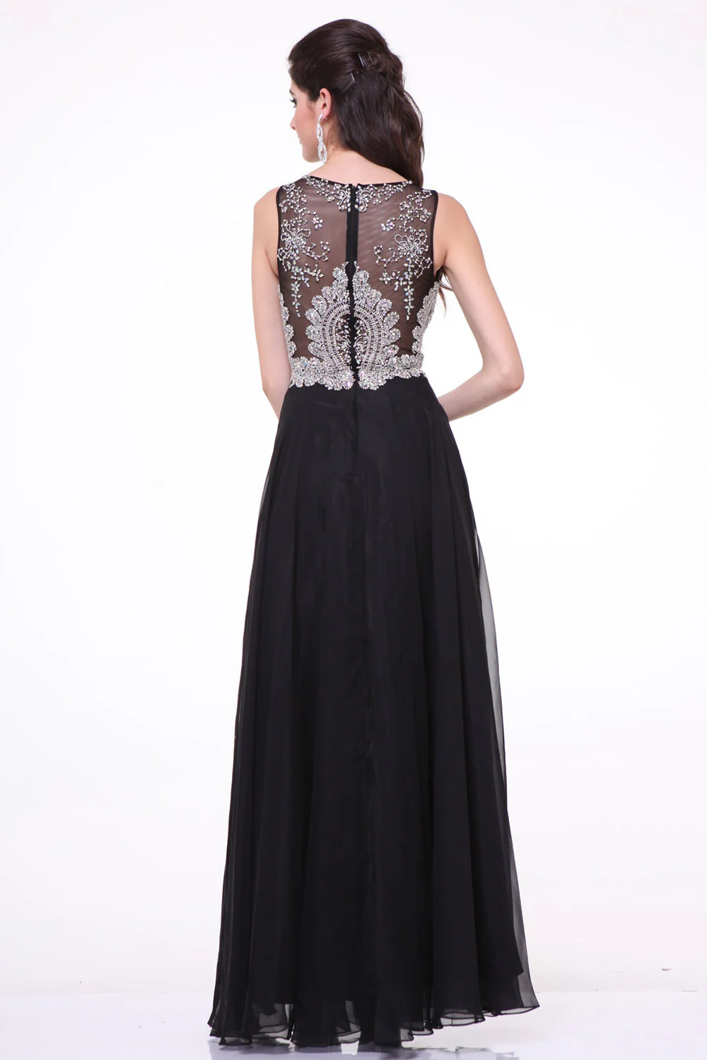 Chiffon Black Beaded Cap Sleeves Long Prom Dress ED0721