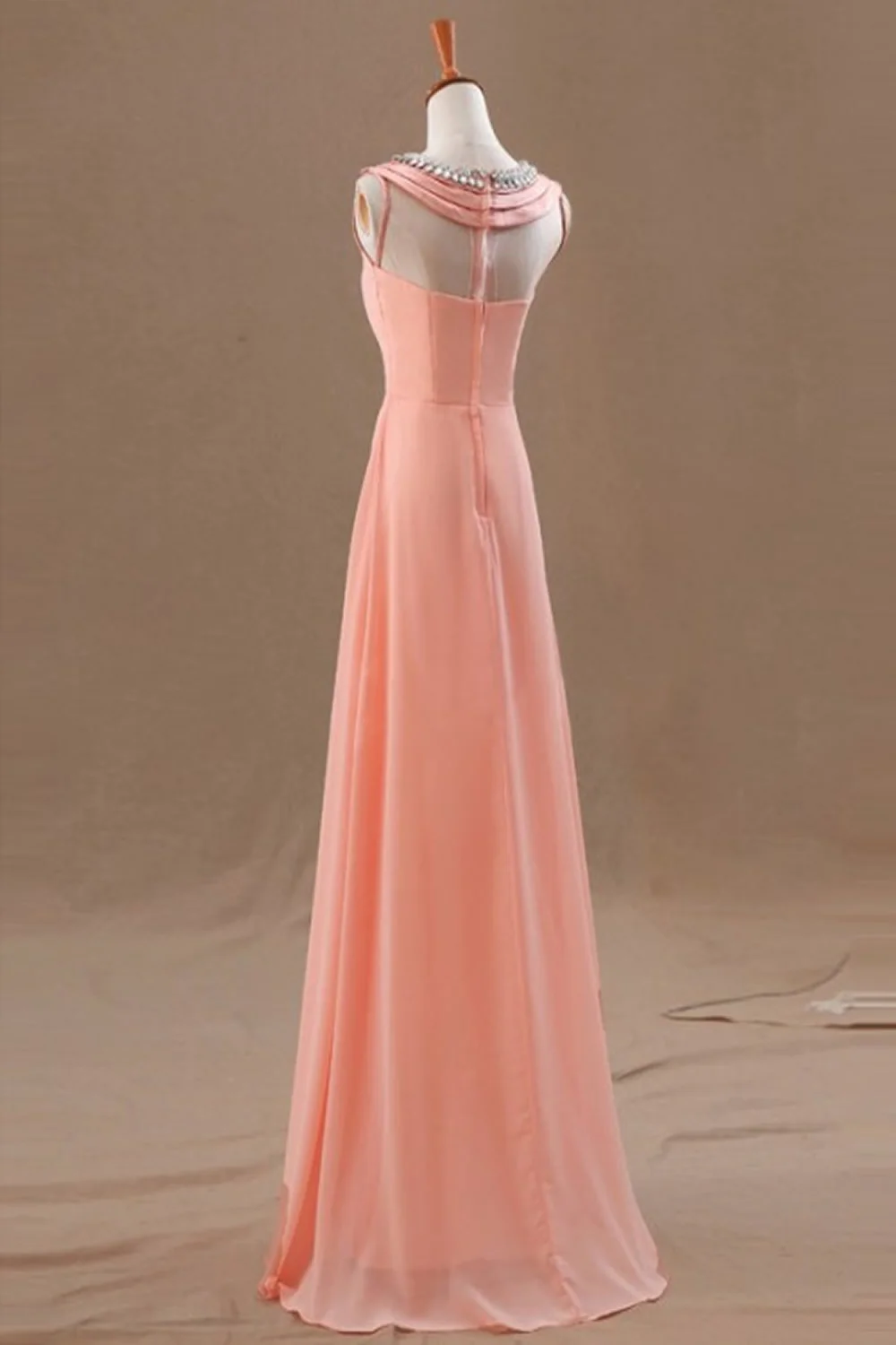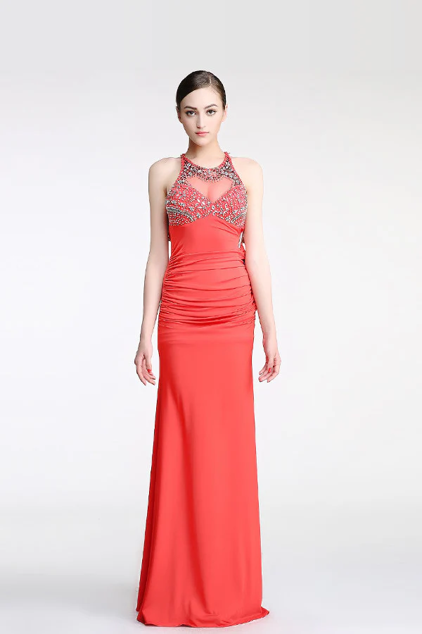 Watermelon Beaded Long Sheath Modest Prom Dresses K674