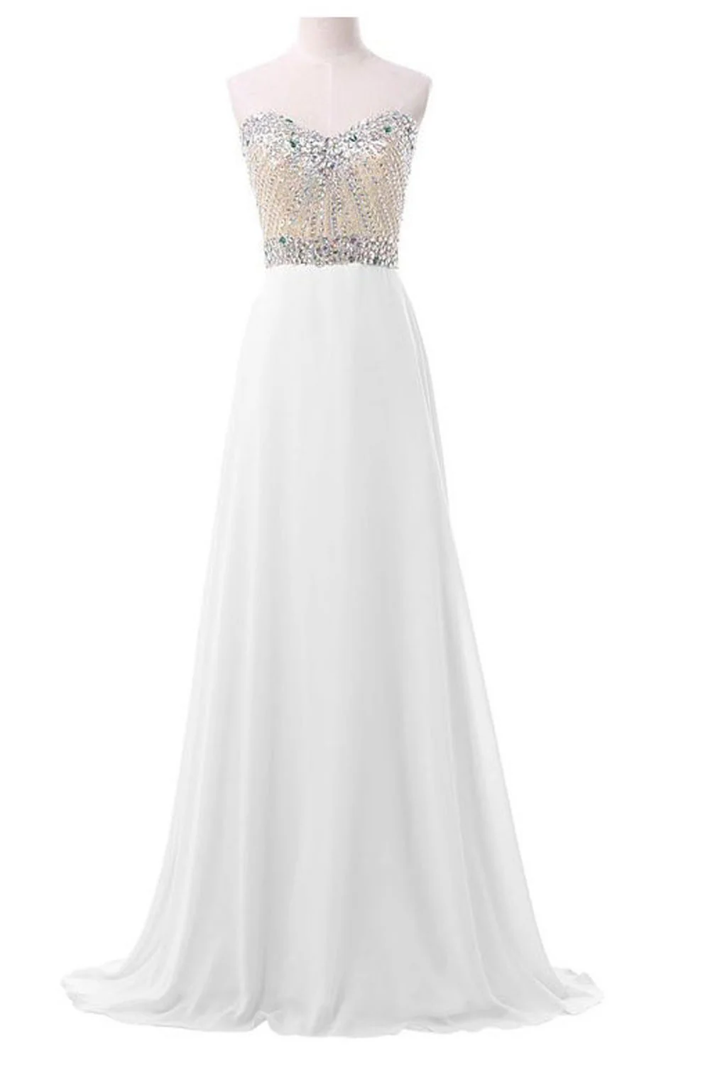 White Chiffon Sweetheart Beaded Long Prom Evening Dresses