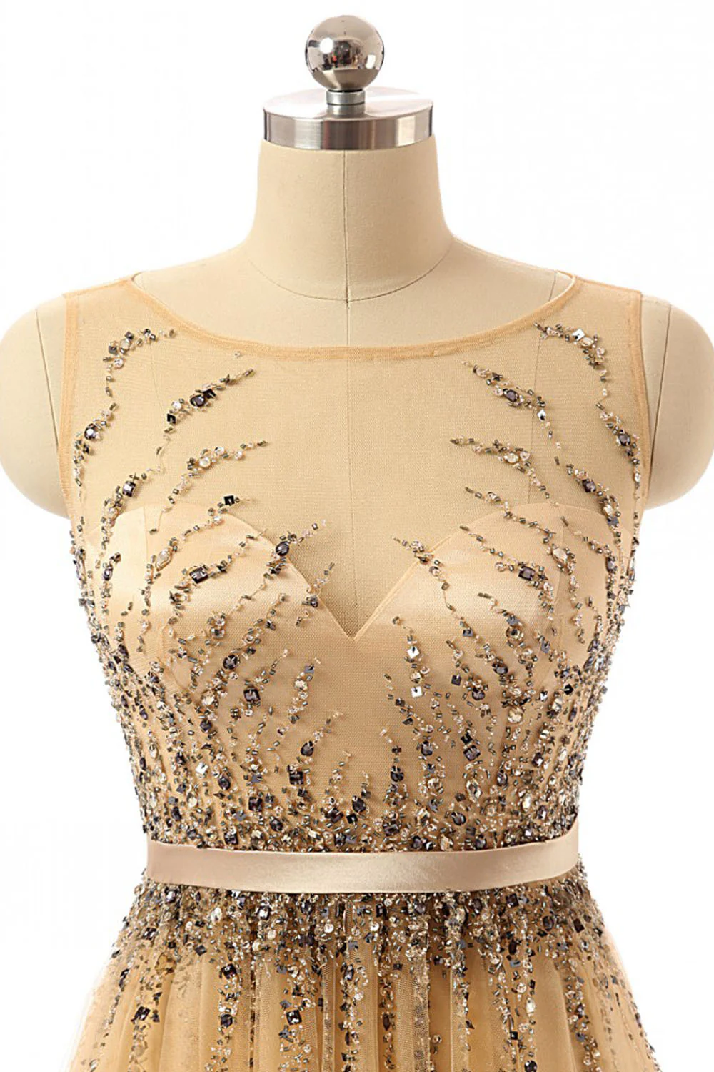 Beaded Gold Long Cap Sleeves Modest Prom Dresses ED0855