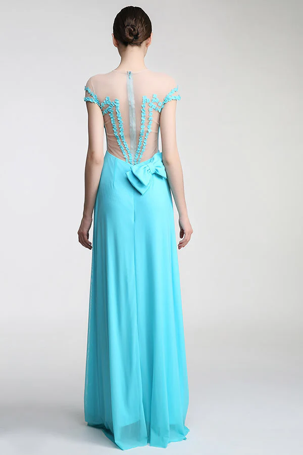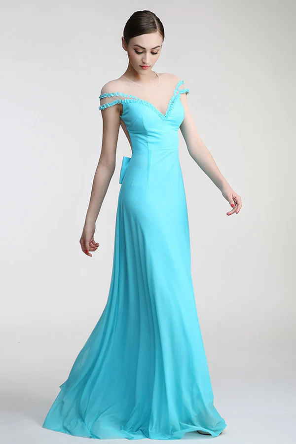 Cap Sleeves Chiffon Long Prom Evening Dresses ED0675