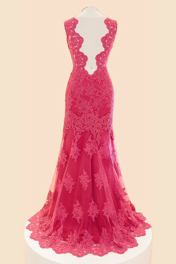 Deep V-neck Fuchsia Mermaid Long Lace Prom Dress ED1032