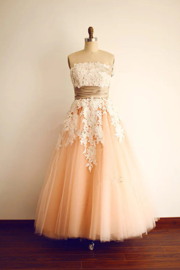 Strapless Lace Open Back Modest Prom Party Dress ED0967