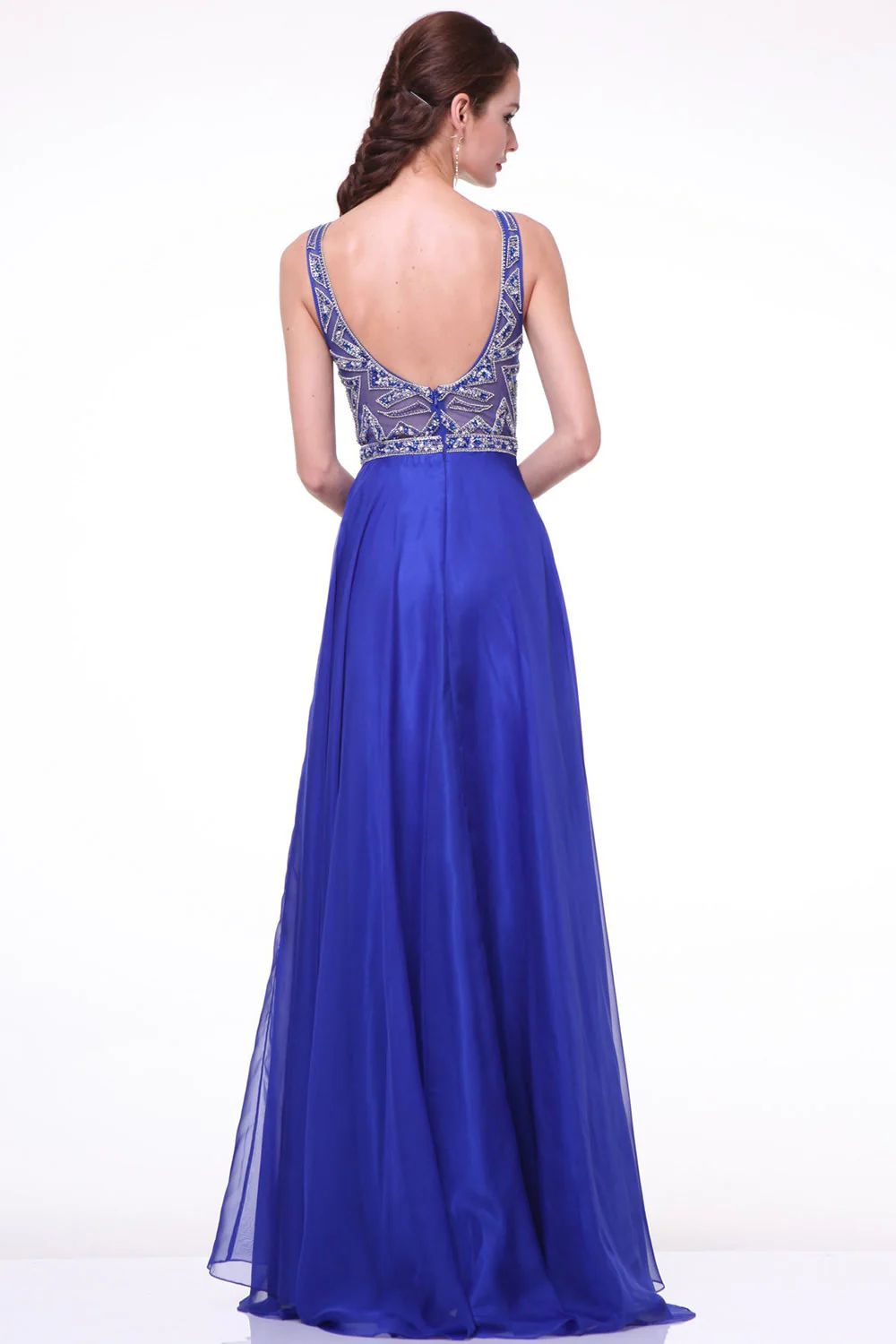 Elegant Royal Blue Long Beaded Cap Sleeves Backless Prom Dress ED0722