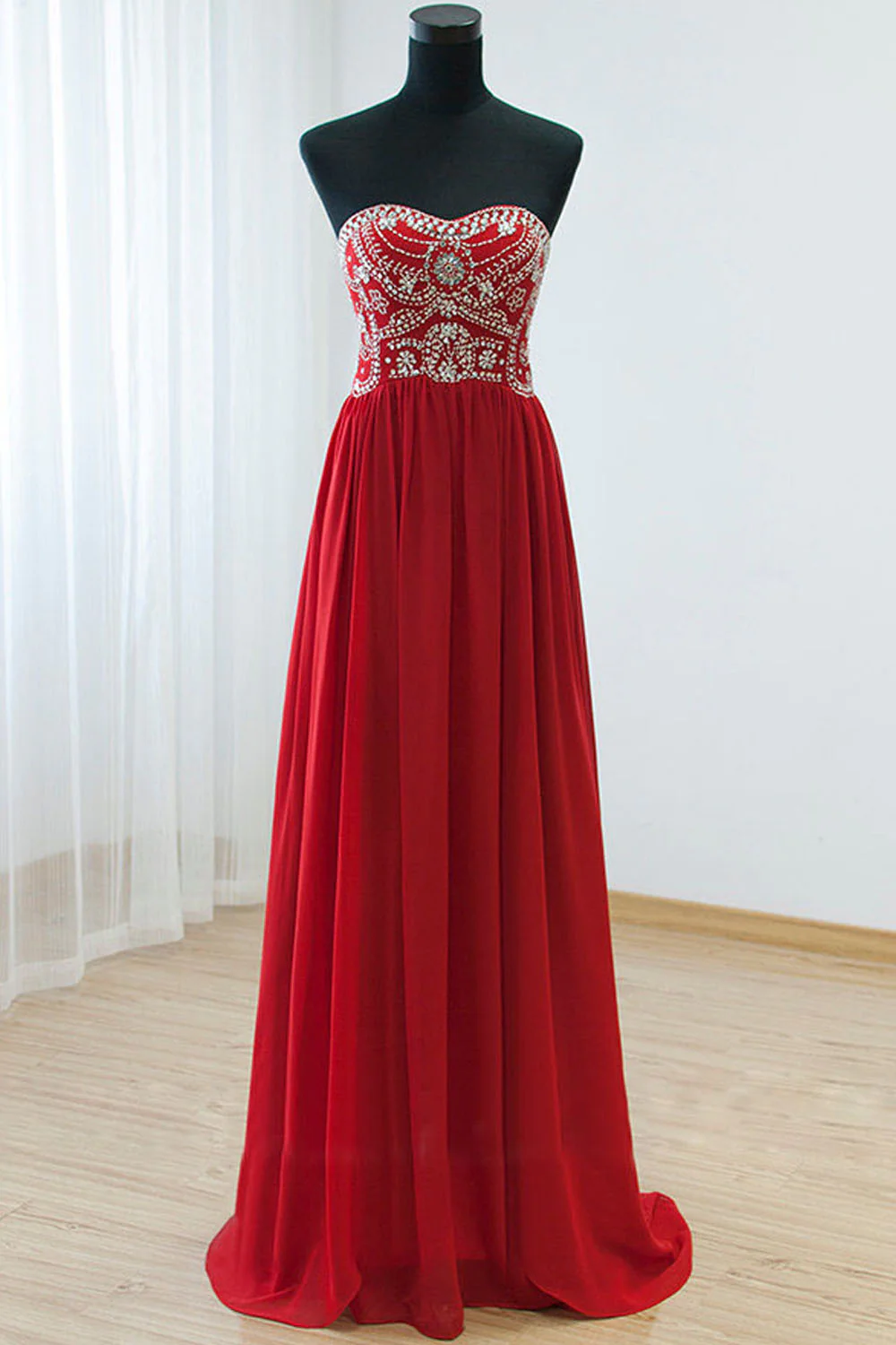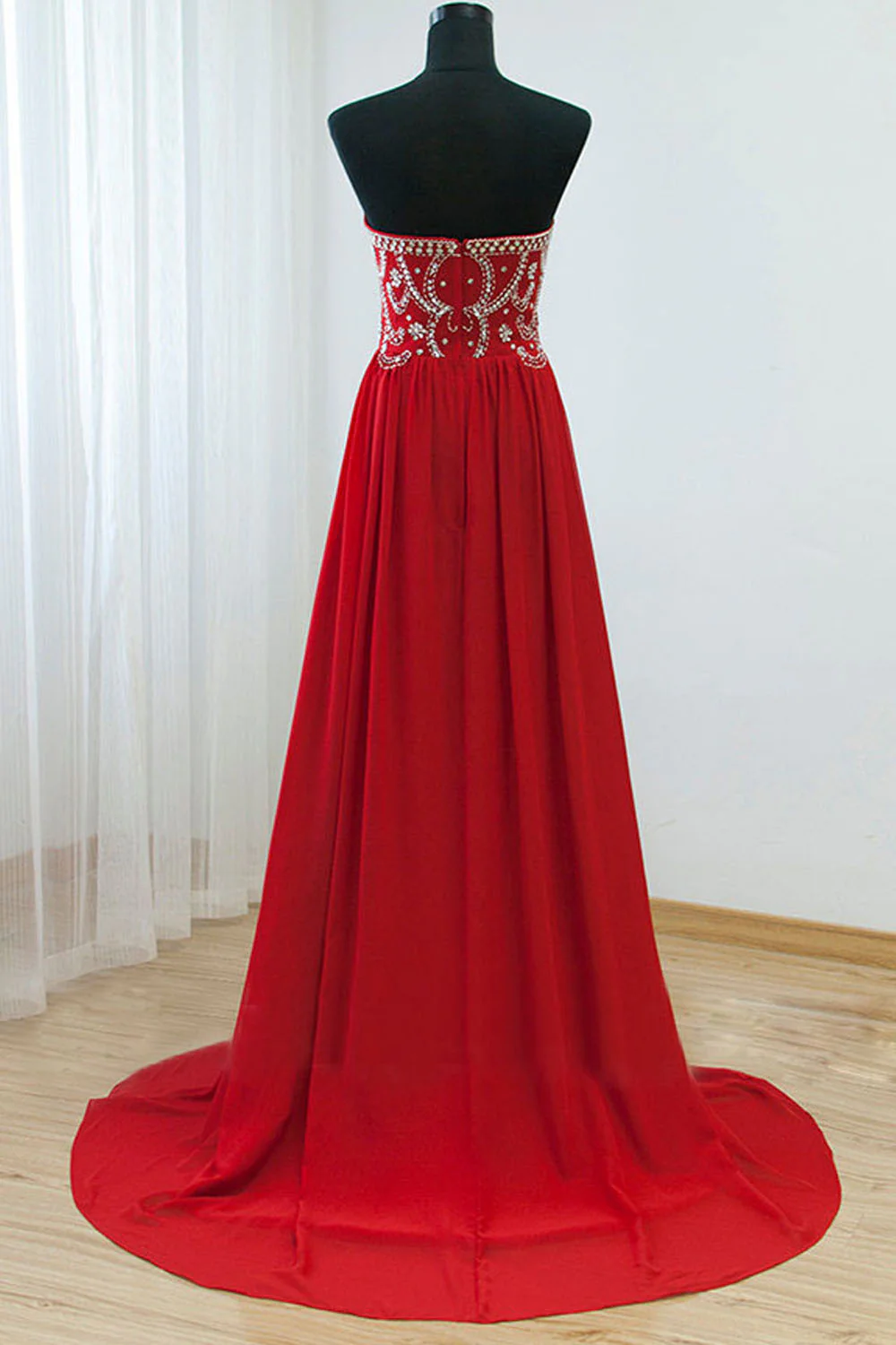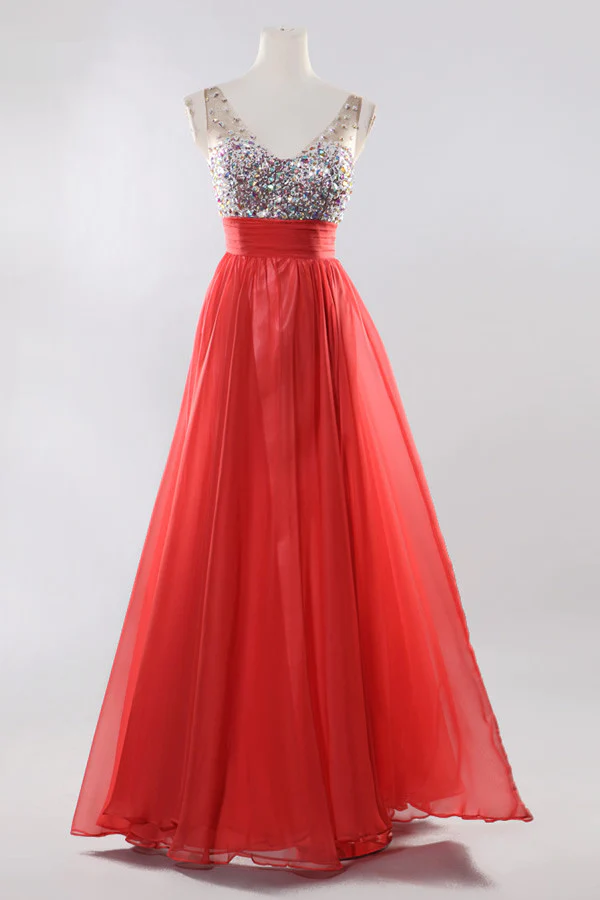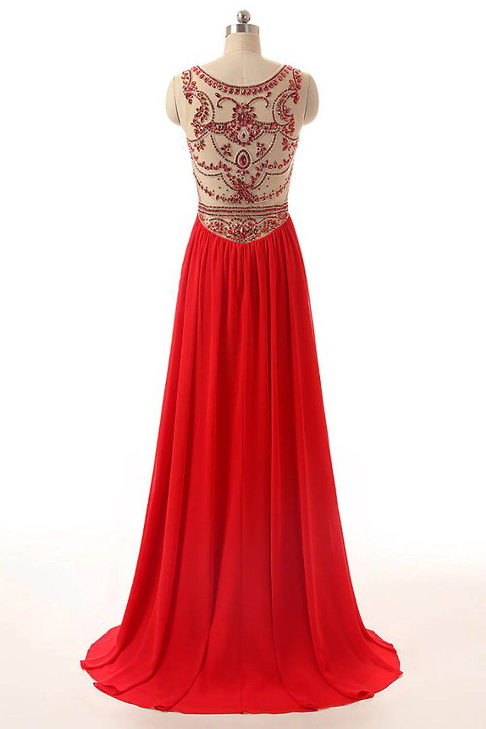 Modest Red Chiffon Beaded Open Back Prom Party Dress ED0723